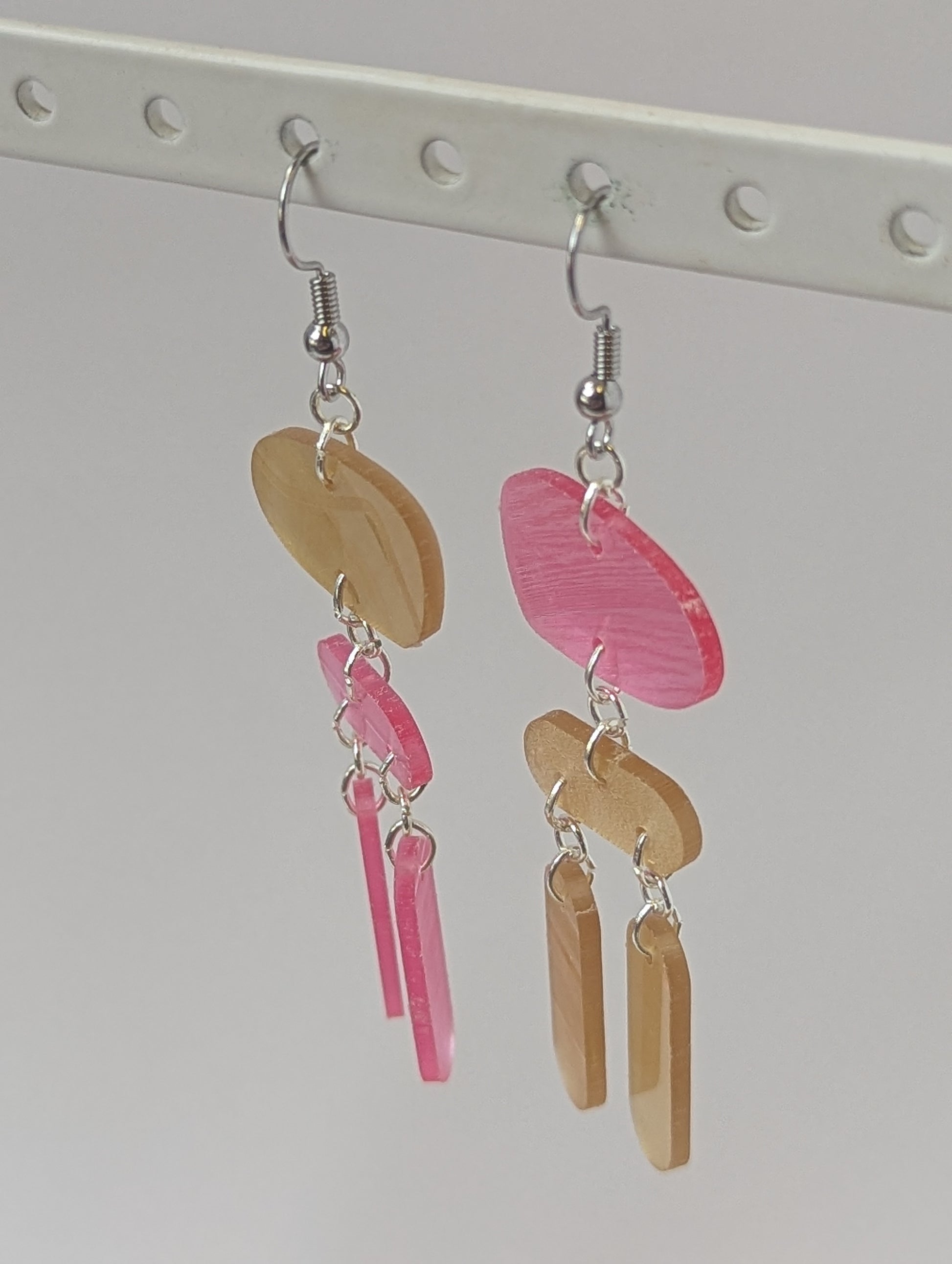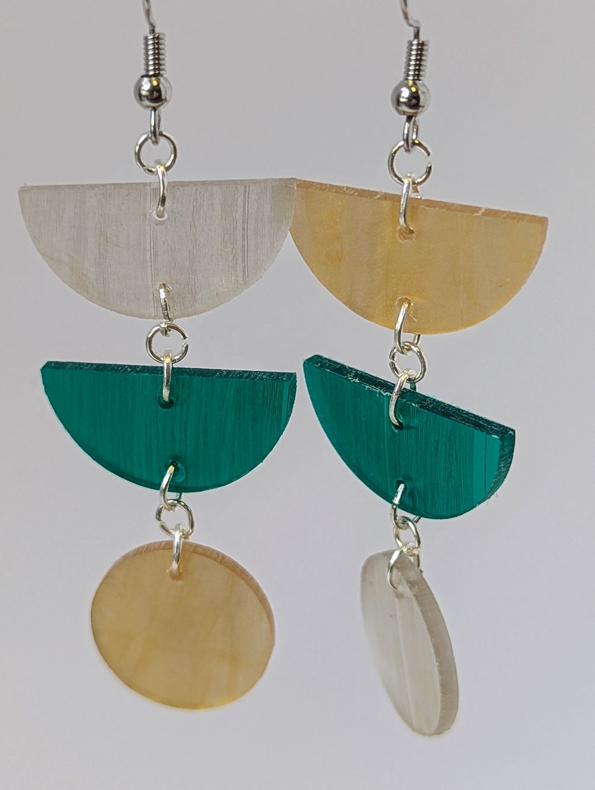 Our multicolor earrings come in abstract, geometric shapes. Each pair of earrings has a unique color combination, so every earring is one of a kind and hand crafted! (Colors may vary according to inventory.)